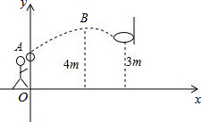 m,与篮圈中心的水平距离7.3m.当球出手后离甲水平距离为4m时到达最大高度4m,设篮球运行的轨迹为抛物线,篮圈距地面3m