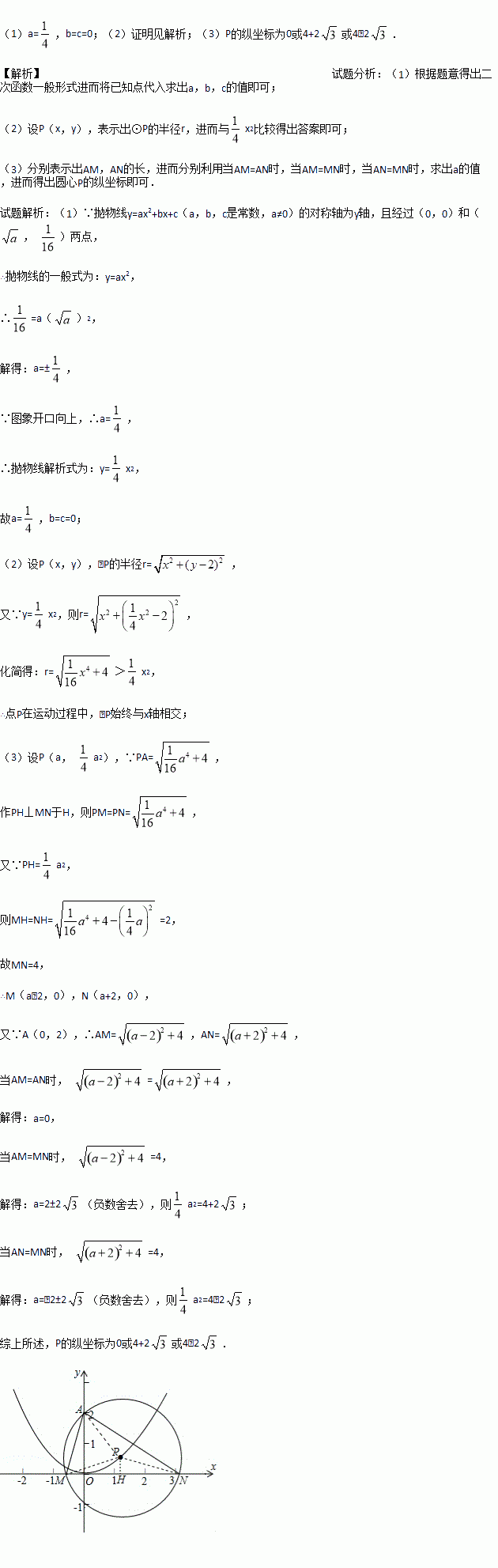 )两点,点P在抛物线上运动,以P为圆心的⊙P经过定点A(0,2),