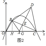 £¨2£©ÏÈÖ¤Ã÷DE¡ÍBC£¬ÔÙÇóÖ±ÏßAEÓëÅ×ÎïÏߵĽ»µã¾ÍÊǵãP£¬ËùÒÔ·Ö±ðÇóÖ±ÏßAEºÍÅ×ÎïÏßy1µÄ½âÎöʽ×é³É·½³Ì×飬Çó½â¼´¿É£»ÓÉOB¡ÎADµÃ¡÷OBEÊÇÖ±½ÇÈý½ÇÐΣ¬ËùÒÔPÓëOÖØºÏʱ£¬Âú×ã¡÷BEPΪֱ½ÇÈý½ÇÐÎÇÒBEΪֱ½Ç±ß£»