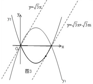 £¨3£©ÏÈ»³öÈçͼ3£¬¸ù¾ÝͼÐλ³öÖ±ÏßÓëͼÐÎMÓиö¹«¹²µãʱ£¬Á½¸ö±ß½çµÄÖ±Ïߣ¬ÉÏ·½µ½y=$\sqrt{3}$x£¬½«y=$\sqrt{3}$xÏòÏÂÆ½ÒƼ´¿ÉÂú×ãlÓëͼÐÎMÓÐ3¸ö¹«¹²µã£¬Ò»Ö±µ½Ö±ÏßlÓëy2ÏàÇÐΪֹ£¬Ö÷Òª¼ÆËãÏàÇÐʱ£¬Áз½³Ì×飬ȷ¶¨¡÷¡Ý0ʱ£¬mµÄÖµ¼´¿É£®