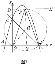(3)法一:存在点P,使sin∠OPB的值最大,当QP⊥DH时,QP最小,此时⊙Q与DH相切于点P(如图3),求出OQ即可.