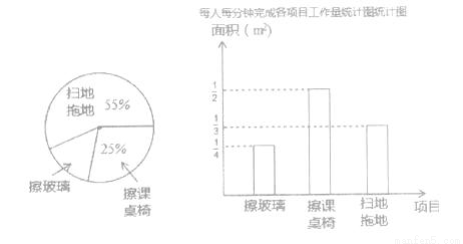 (1)从统计图中可知:擦玻璃的面积占总面积的百分比为________,每人每分钟擦课桌椅________m2;