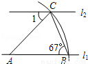 如图,直线l1∥l2,以直线l1上的点A为圆心、适当长为半径画弧,分别交直线l1、l2于点B、C,连接AC、BC.若∠ABC=67°,则∠1=( )