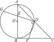 如图,在Rt△ABC中,∠ABC=90°,AB=CB,以AB为直径的⊙O交AC于点D,点E是AB边上一点(点E不与点A、B重合),DE的延长线交⊙O于点G,DF⊥DG,且交BC于点F.