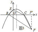 ②如图3,作∠CBF=45°交抛物线于F,过点F作FF′⊥x轴于F′,![]()