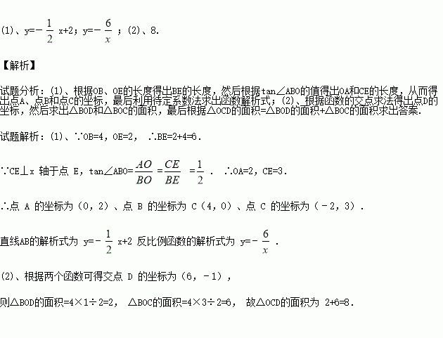 如图,在平面直角坐标系中,O 为原点,直线 AB 分别与 x 轴、y 轴交于 B 和 A,与反比例函 数的图象交于 C、D,CE⊥x 轴于点 E,tan∠ABO=