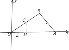 ·ÖÎö£º£¨1£©¹ýCµã×÷CM¡ÍOA£¬Çó³öCM£¬OMµÄ³¤£¬¼´¿ÉÇó³öCµÄ×ø±ê£¬È·¶¨³öµ±BD=4ʱ£¬DËùÔÚµÄλÖü´¿ÉÇó³ötµÄÖµ£®