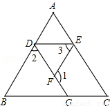 如图所示是甲、乙二人在△ABC中的行进路线,甲:B→D→F→E;乙:B→C→E→D.已知∠1+∠2=180°,∠3=∠B.