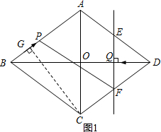 分析 (1)由四边形ABCD是菱形,OA=$\frac{1}{2}$AC,OB=$\frac{1}{2}$BD.在Rt△AOB中,运用勾股定理求出AB=10.再由△DFQ∽△DCO.得出$\frac{DF}{DC}$=$\frac{QD}{OD}$.求出DF.由AP=DF.求出t.