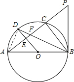 (2)先由圆周角定理得出∠ACB=90°,根据直角三角形两锐角互余得到∠CFB+∠CBF=90°.再由PF=PB,根据等边对等角得出∠PBF=∠CFB,而由(1)知∠OBD=∠CBF,等量代换得到∠PBF+∠OBD=90°,即∠OBP=90°,根据切线的判定定理得出PB是⊙O的切线;