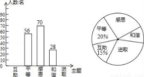 某校开展了“互助、平等、感恩、和谐、进取”主题班会活动,活动后,就活动的5个主题进行了抽样调查(每位同学只选最关注的一个),根据调查结果绘制了两幅不完整的统计图.根据图中提供的信息,解答下列问题: