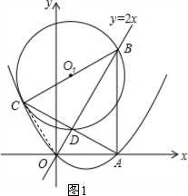 ¢ÙÈçͼ3£¬¹ýµãC×÷CP1¡ÎOA½»Ö±Ïßy=2xÓÚµãP1£¬Ôò¡÷P1CD¡×¡÷ABD£¬![]()