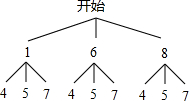 解答 解:选择A.画树状图得:∵选择A,获胜的有5种情况,选择B获胜的有4种情况,∴P(选择A)=$\frac{5}{9}$,P(选择B)=$\frac{4}{9}$,∴选择A.