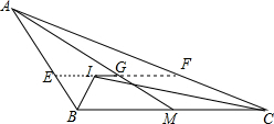 分析 延长IG交AC于F,延长GI交AB于E,得到EF∥BC,根据平行线的性质得到∠EIB=∠EBI,∠FIC=∠FCI,根据角平分线的性质得到∠EBI=∠IBM.∠FCI=∠ICM,等量代换得到∠EIB=∠EBI,∠FIC=∠FCI,求得EF=EI+IF=BE+CF,然后根据平行线分线段成比例即可得到结论.