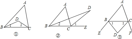 ∴∠1=$\frac{1}{2}$∠EBC,∠2=$\frac{1}{2}$∠FCB,