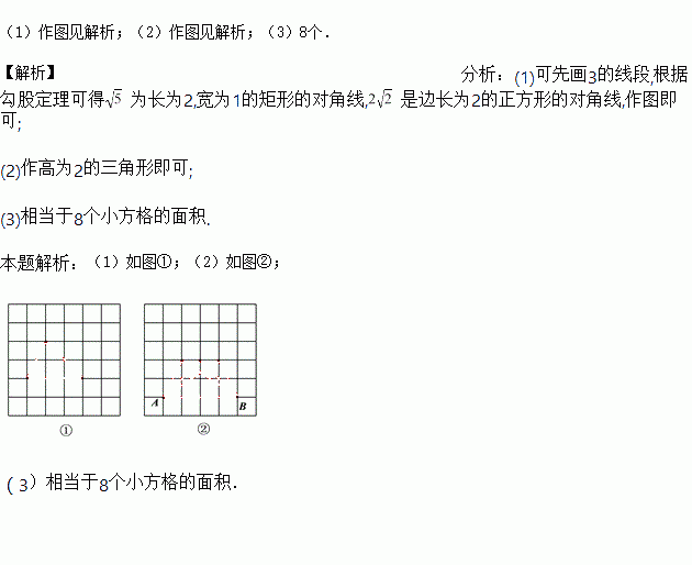 (2)在图②中,线段AB的端点在格点上,请画出以AB为一边的三角形,使三角形的面积为4(要求至少画出3个);