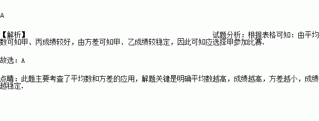 根据表中数据,要从中选择一名成绩好且发挥稳定的运动员参加比赛,应该选择( )
