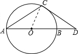 如图,点D在⊙O的直径AB的延长线上,点C在⊙O上,AC=CD,∠ACD=120°,求证:CD是⊙O的切线.