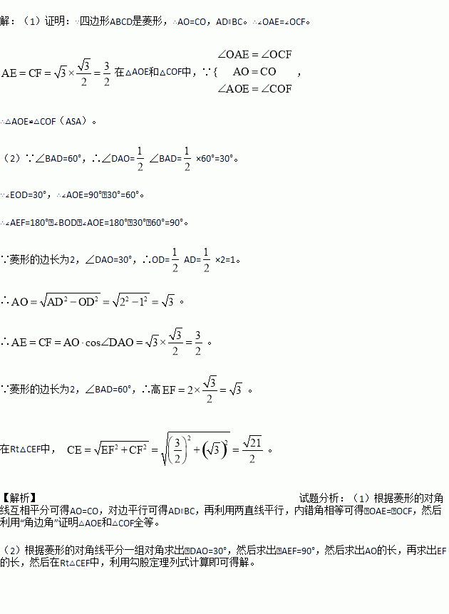 已知四边形ABCD是边长为2的菱形,∠BAD=60°,对角线AC与BD交于点O,过点O的直线EF交AD于点E,交BC于点F.