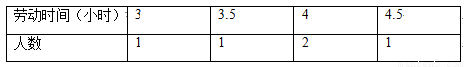 某小组5名同学在一周内参加家务劳动的时间如下表所示,关于“劳动时间”的这组数据,以下说法正确的是( )