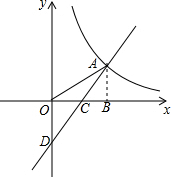 分析 (1)作AB⊥x轴于B,通过△COD≌△CBA得出OD=AB=2,从而求得D(0,-2),进而根据S△ODA=4求得A的横坐标,然后利用待定系数法即可求得反比例函数和一次函数的解析式;