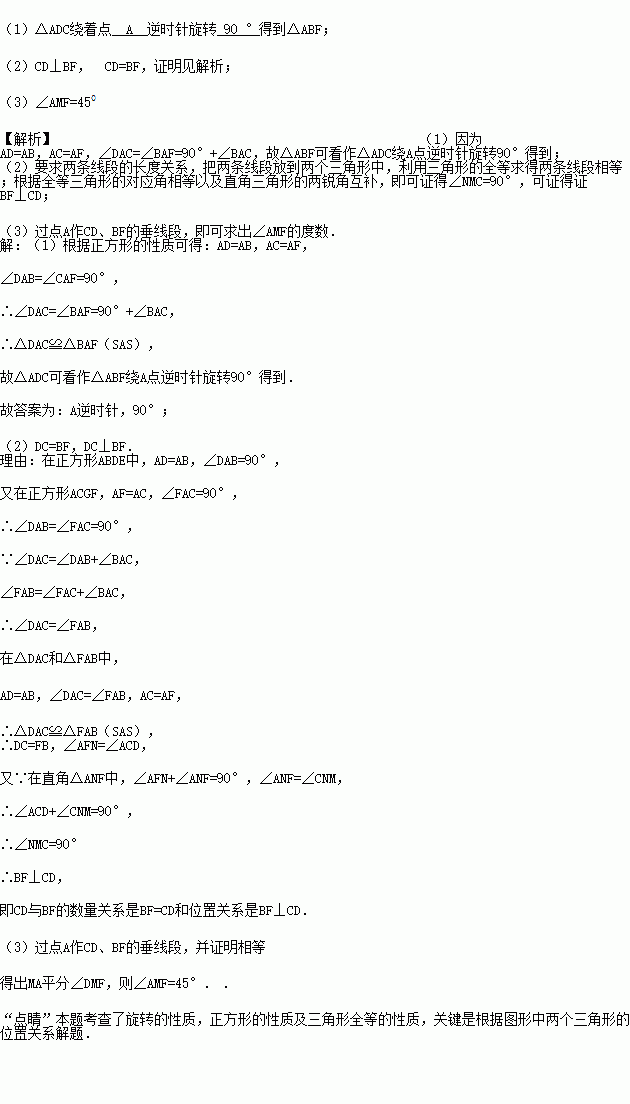 △ADC绕着点__ ___逆时针旋转___ __°得到△ABF 。