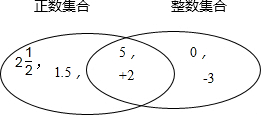 13.将2$\frac{1}{2}$,5,0,1.5,+2,-3 填入相应的圈内,并说明两个圈的重叠部分表示的是什么数的集合.