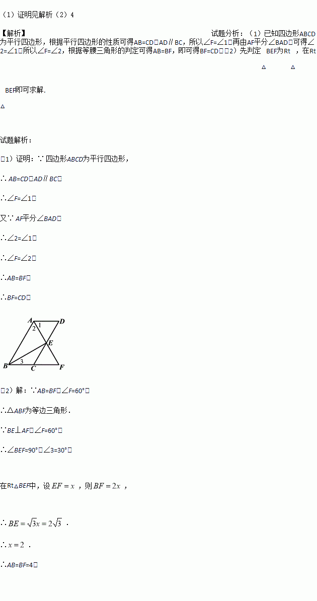 (2)连接BE,若BE⊥AF,∠F=60°,