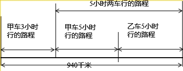 分析:(1)画出分析示意图,设乙的速度是每小时y千米.根据甲行驶的路程+乙行驶的路程=全程940建立方程求出其解就可以了;