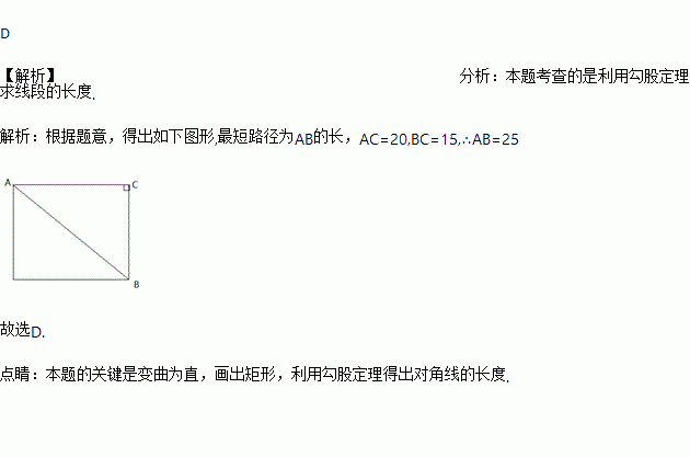 如图,是一个三级台阶,它的每一级的长、宽、高分别为20dm、3dm、2dm,A和B是这个台阶两个相对的端点,A点有一只蚂蚁,想到B点去吃可口的食物,则蚂蚁沿着台阶面爬到B点的最短路程是( )