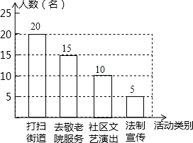 £¨2£©¡°µ½ÉçÇøÎÄÒÕÑݳö¡±ÈËÊýΪ£º50-£¨20+15+5£©=10£¨ÈË£©£¬