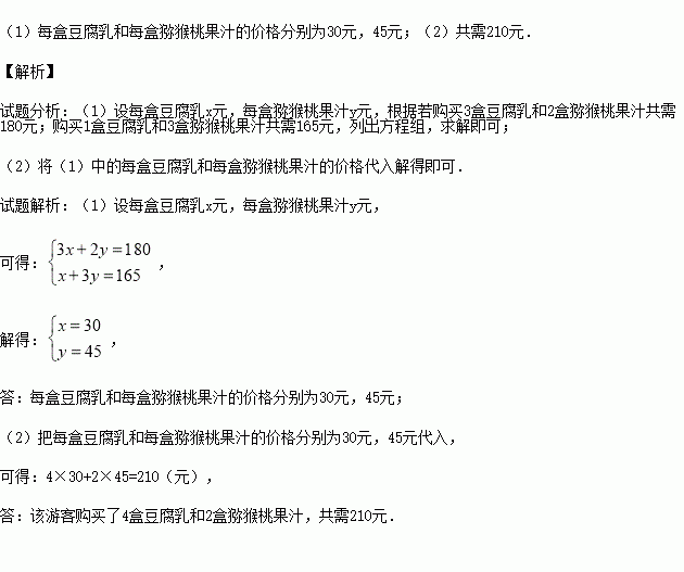 (2)该游客购买了4盒豆腐乳和2盒猕猴桃果汁,共需多少元?