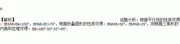 如图,四边形ABCD中,点M,N分别在AB,BC上,将△BMN沿MN翻折,得△FMN,若MF∥AD,FN∥DC,则∠B =( )