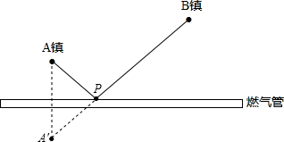 ②作出A镇关于燃气管道的对称点A′,连接A′B,根据轴对称确定最短路线问题,A′B与燃气管道的交点即为所求的点P的位置.