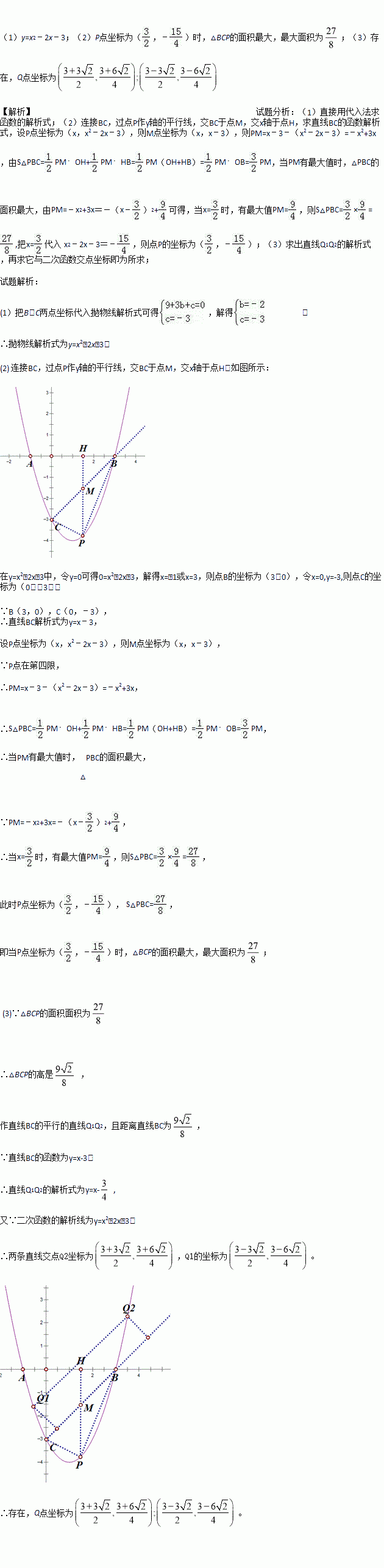 (3)当△BCP的面积最大时,在抛物线上是否点Q(异于点P),使△BCQ的面积等于△BCP,若存在,求出点Q的坐标,若不存在,请说明理由.