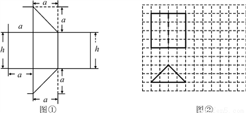 (2)如图②是根据 a,h的取值画出的几何体的主视图和俯视图(图中的粗实线表示的正方形(中间一条虚线)和三角形),请在网格中画出该几何体的左视图;