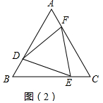 (2)根据等边三角形的性质得出∠A=∠B=∠C=60°,AB=BC=CA,AD=BE=CF,进一步证得BD=EC=AF,即可证得△ADF≌△BED≌△CFE,根据全等三角形的性质得出DE=EF=FD,即可证得△DEF是等边三角形;