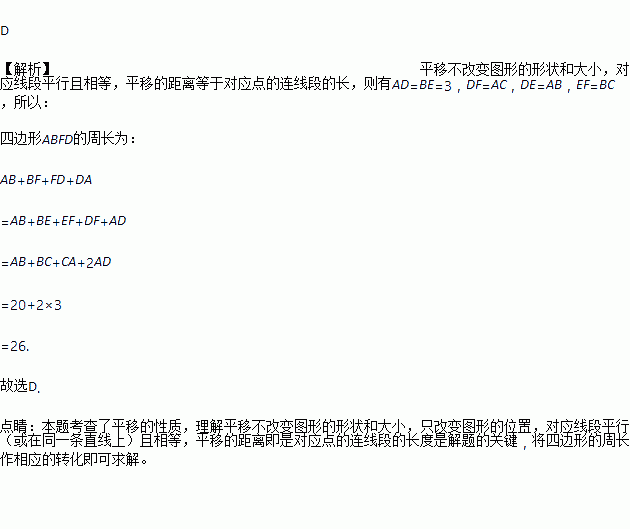 如图,将△ABC沿BC方向平移3cm得到△DEF,若△ABC的周长为20cm