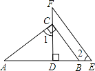 如图,是由两个相同的直角三角形ABC和FDE拼成的,则图中与∠A相等的角有(    )个,分别是(    );∠1与∠A关系是(    );∠2与∠1的关系是(    ).