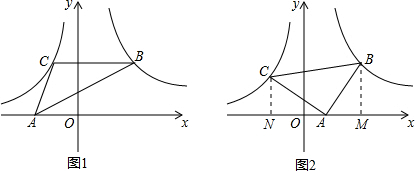 (2)若BC与x轴平行,则有C与B纵坐标相同,把B纵坐标代入双曲线y=-$\frac{3}{x}$中,求出x的值,确定出C坐标,进而求出BC的长,三角形ABC面积以BC为底边,B纵坐标为高,求出即可;
