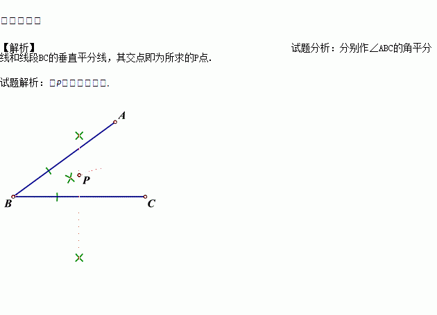如图两条公路AB与CB,B,C是两个村庄,现在要建一个菜场,使它到两个村庄的距离相等而且还要使它到两条公路的距离也相等,用尺规作图画出菜场P的位置.(不写作法,保留作图痕迹)