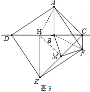 (3)首先根据全等三角形判定的方法,判断出△ABD≌△DHE,即可推得AB=DH,BD=HE;然后判断出△EHC是等腰直角三角形,再根据全等三角形判定的方法,判断出△ADH≌△FAB,即可推得AH=BF,∠AHD=∠FBA;再判断出△BAH≌△CBF,即可推得HB=CF,∠BCF=∠ABH=90°,∠FCM=45°;最后根据全等三角形判定的方法,判断出△BHM≌△FCM,即可推得BM=FM.