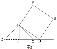 如图1,延长BA至G,使AG=BD,连接FG,![]()