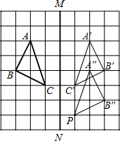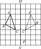 分析:(1)分别A、B、C关于MN的轴对称点,顺次连接可得△A′B′C′;