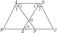 如图所示,已知∠1=∠2,∠3=∠4,∠5=∠C,求证:AB∥DE.
