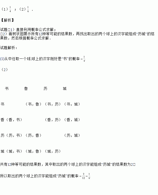 (1)若从中任取一个球,球上的汉字刚好是“德”的概率为多少?