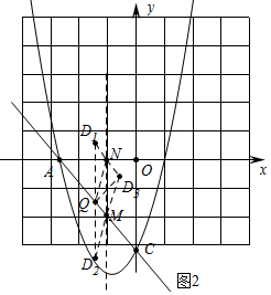 (3)如图2中,分两种情形①当MN为平行四边形的边时,DQ=MN=2,可得D1(-$\frac{3}{2}$,$\frac{1}{2}$),D2(-$\frac{3}{2}$,-$\frac{7}{2}$).②当MN为对角线时,可得D3(-$\frac{1}{2}$,-$\frac{1}{2}$).