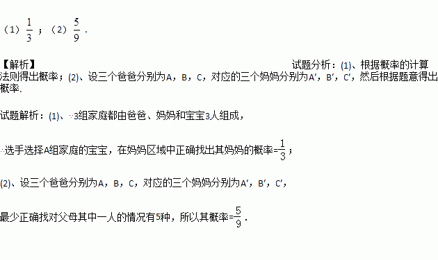 ½ËÕÎÀÊÓ¡¶×îÇ¿´óÄÔ¡·Ôø²¥³öÒ»ÆÚ¡°±æÁ³Ê¶ÈË¡±½ÚÄ¿£¬²ÎÈüÑ¡ÊÖÒÔ¼ÒͥΪµ¥Î»£¬Ã¿×é¼ÒÍ¥ÓɰְÖÂèÂèºÍ±¦±¦3ÈË×é³É£¬°Ö°Ö¡¢ÂèÂèºÍ±¦±¦·ÖÉ¢ÔÚÈý¿éÇøÓò£¬Ñ¡ÊÖÐèÔÚ±¦±¦ÖÐѡһ¸ö±¦±¦£¬È»ºó·Ö±ðÔÚ°Ö°ÖÇøÓòºÍÂèÂèÇøÓòÖÐÕýÈ·ÕÒ³öÕâ¸ö±¦±¦µÄ¸¸Ä¸£¬²»¿¼ÂÇÆäËûÒòËØ£¬½ö´ÓÊýѧ½Ç¶È˼¿¼£¬ÒÑÖªÔÚ±¾ÆÚ±ÈÈüÖÐÓÐA¡¢B¡¢CÈý×é¼ÒÍ¥½øÐбÈÈü.