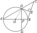 (2)作DG⊥AB交⊙O于G,垂足为F,若∠A=30°,AB=8,求弦DG的长。