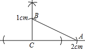 分析 先作一个直角,然后用刻度尺以交点C为顶点在两条边上分别截取CB=1cm,CA=2cm的线段,连接AB即可得出一个直角三角形,斜边AB即为所求的线段.
